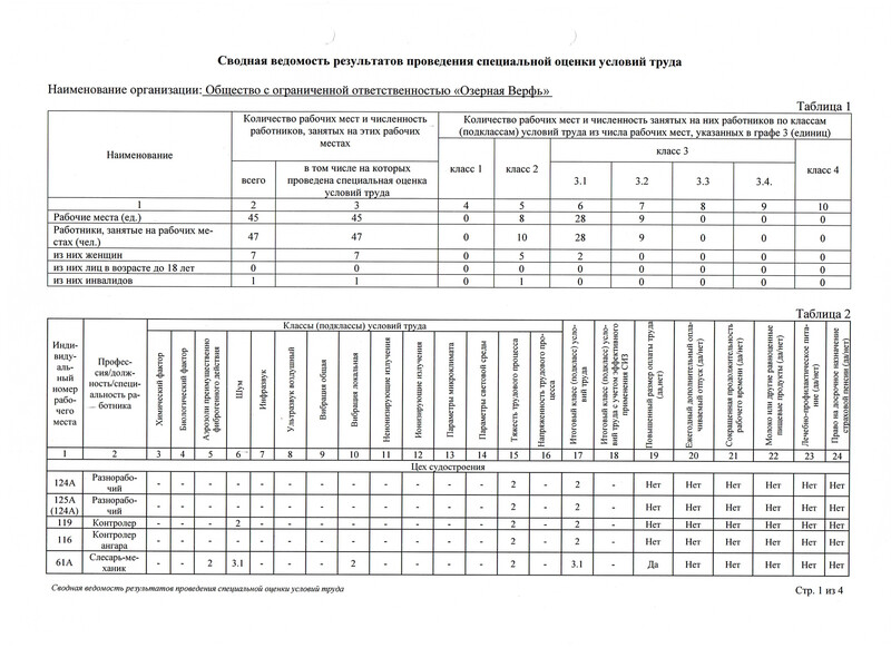 В компании ООО "Озерная Верфь" была проведена специальная оценка условий труда, с результатами которой вы можете ознакомиться.
