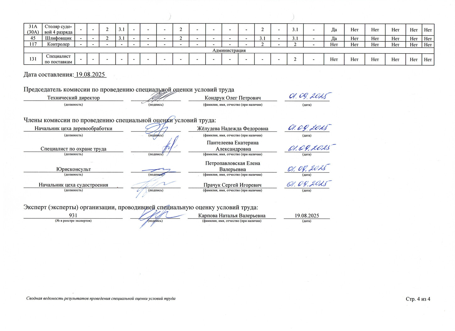 Оценка условий труда
